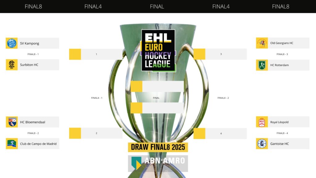 The other half has English champions Old Georgians lining up a battle with the other Dutch side remaining, HC Rotterdam.