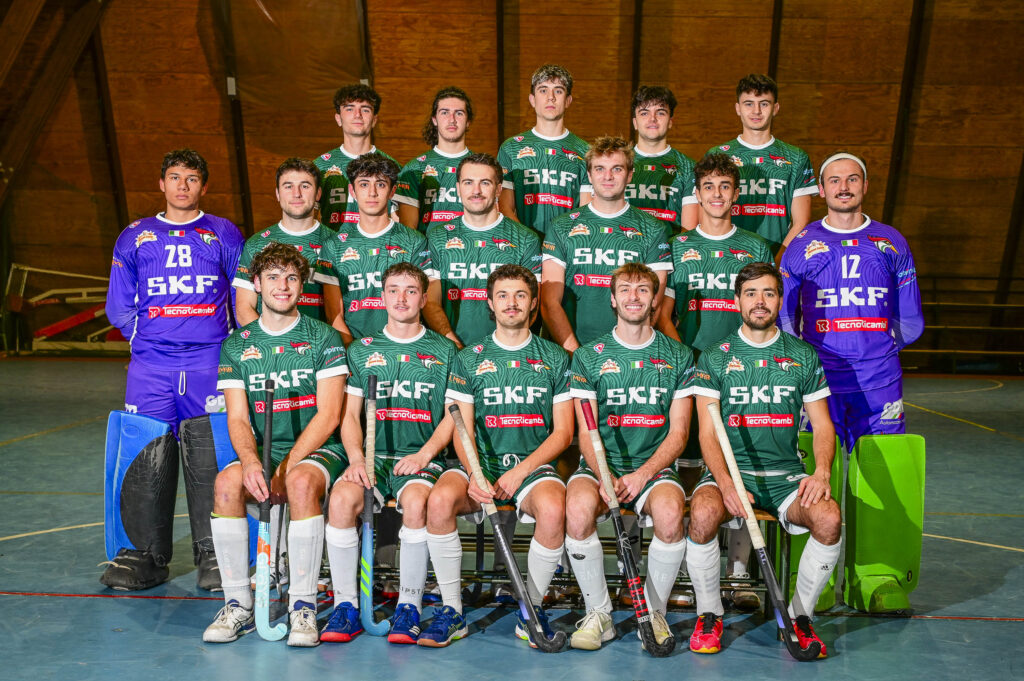 Over the years, several players have been selected to represent Italy. Alberto Ughetto, the captain of Hockey Prato Valchisone, has earned 22 caps for the Italian outdoor national team, 11 for the indoor team, and 6 in Hockey5s. Andrea Dell’Anno, our first-choice goalkeeper, has also represented Italy with four caps outdoors, eight in indoor, and five in Hockey5s.